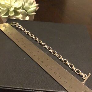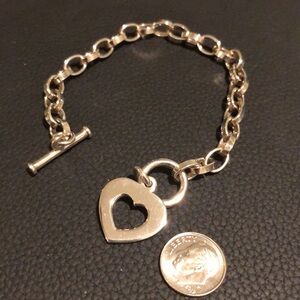 Chunky Sterling Silver Rolo link charm bracelet features a lovely heart charm attached to a toggle clasp.