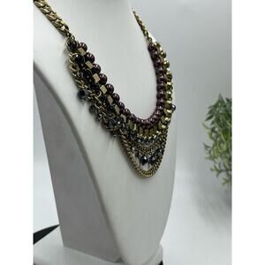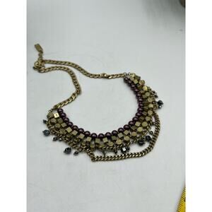 Silpada KR Vintage Hematite Bead Purple Faux Pearl Brass Necklace Magnetic Clasp