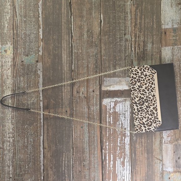 SILPADA | Chic leopard print flap. Sleek black body. Gold chain strap. Perfect for evening outings.