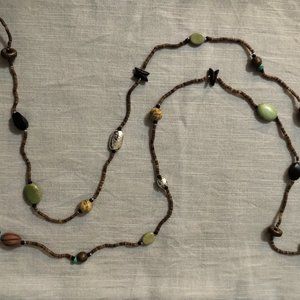 This Silpada classic is so versatile that it can be worn double or triple layered, or even single layered with a drop knot! Green and Blue Howlite, Picture Jasper, Copper and Wood Beads, Black Coconut, Salwag, Brown Lip Shell and Sterling silver accents. 60" long.