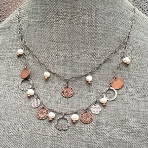Silpada N1567 Sterling Silver 925 Copper Coin Pearl Cha Cha Necklace Layered