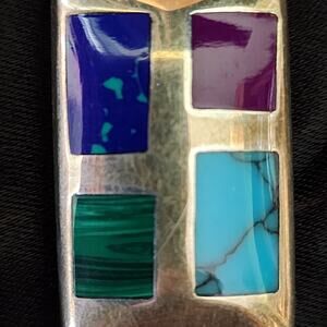 Retired Silpada S0075 pendant in sterling silver featuring Azurite, Malachite, Sugilite, and Turquoise. Rich color and artisan detail make it a standout for collectors or fans of earthy, layered styles