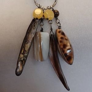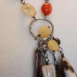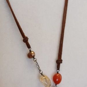 Silpada Quartz MOP Quartz Jade Long Necklace Brown Leather Cord