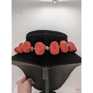 Silpada Red Sponge graduated Coral Necklace sterling Silver Toggle Clasp 17.5"