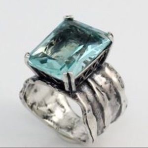 Stunning Sterling Silver & Aqua Ring. EUC Reminder: Silpada wide banded rings fit snug for their size.