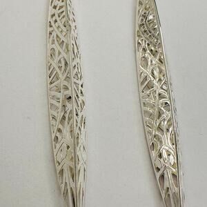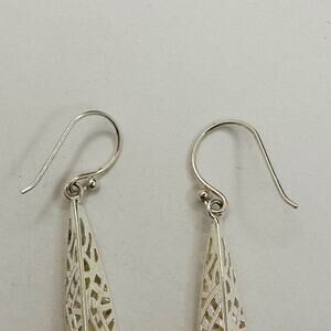 Retired Silpada STILETTO earrings , 2013-14 catalog. Elongated teardrops in fishhook style ear hooks. . Cut-out design, with an Art Deco feel.