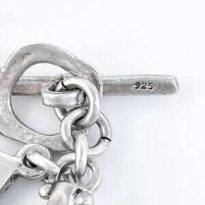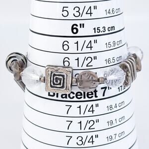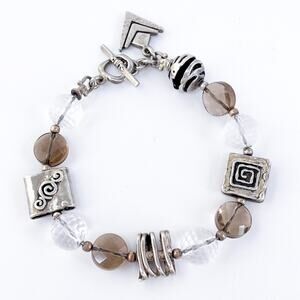 This bold vintage Silpada bracelet features alternating faceted smoky quartz and clear crystal beads, accented with sculptural sterling silver geometric spacers and a statement charm. The design is rich with texture and contrast, making it a striking accessory for both casual and dressy occasions. A substantial piece with signature artisan flair, perfect for collectors of Silpada jewelry.