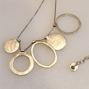 Elevate your jewelry collection with the timeless elegance of the Silpada Sterling Silver .925 Vintage 5 Circle Necklace. Crafted with a keen eye for detail, this exquisite piece features five intricately etched circles, each representing a unique journey in life. The circles are beautifully strung on a 19.5-inch sterling silver chain, finished with a secure lobster clasp for a comfortable fit. With its artful design and bohemian flair, this necklace is perfect for various occasions, from casual gatherings to more formal celebrations. The nickel-free construction ensures it's a considerate choice for those with sensitive skin. Handmade and signed by Silpada, it's a testament to quality and craftsmanship, making it a thoughtful gift or a cherished personal keepsake
