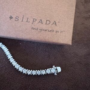 Silpada Sterling Silver Cubic Zirconia Tennis Bracelet 7.5”with Safety Clasp