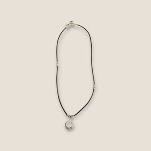 This Silpada necklace showcases a striking combination of black leather and sterling silver elements, culminating in a chic circle pendant. The versatile design suits various styles, offering a polished look.