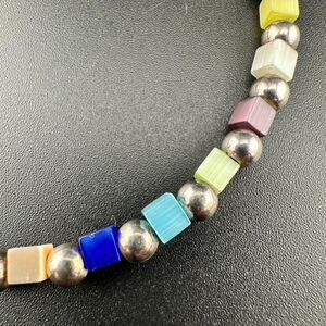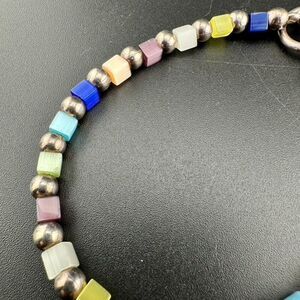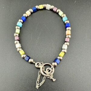 Silpada Sterling Silver Multi color Square Bead Bracelet B0641. Good pre owned condition. measures 7 1/4", see photo. Light expected tarnish. Blue, green, yellow, purple, and orange moon glow beads. Toggle closure.
