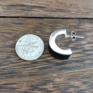 Silpada Sterling Silver earrings with black onyx inlay. Huggie style.
