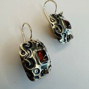 Silpada Sterling Silver and Amber Scroll Square Earrings. Scroll and bead design. Fish hook with loop closure. Marked 925 and the Silpada arrow logo. Measures .75” x .75” for the square with a .5” hook. Weight is 6g. Great used condition.
