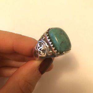 Elegant Silpada ring with a turquoise stone. Intricate silver band design. Perfect for any occasion.