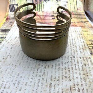 Make a statement with this amazing bracelet. Lovely estate jewelry, marked for Silpada as shown. See all marks and photos with rulers to confirm details and size. Gently preloved. May show very minor signs of age and use. You can see from photos it is in amazing condition. Fast and secure shipping from a smoke free home. Boho, high fashion, statement, jewelry, signed, designer, wide, bold, chunky, cuff, bracelet, brass, bronze tone, metal, boho.