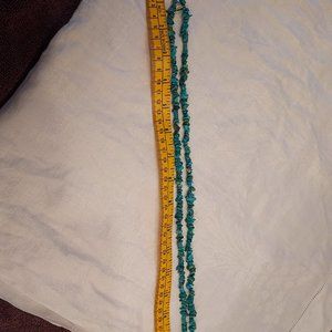 Silpada sterling cross on Turquoise chip necklace w sterling lobster clasp. The Pendant is about 1"x 1 1/4 not including the slip. Turquoise chip necklace is 30" long and can slip over your head or use the .925 lobster clasp. Chips are small about 5mm in average and are rough cut. Silpada sterling cross can be taken OFF this necklace as well. Pendant is Silpada but the necklace is .925 no maker sterling. I see this layered with other necklaces, its beautiful