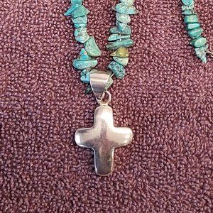 Silpada puffy sterling cross on Turquoise chip necklace w sterling lobster clasp