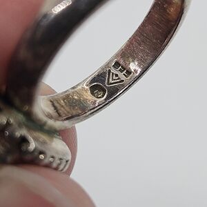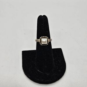 Sterling silver ring with a square-cut pearl. Silver is a little tarnished, but could be polished up if you want it super shiny. In good used condition. Size 6, as shown in mandrel photo.