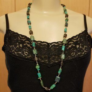Turquoise, azurite, smoky quart and sterling silver necklace is 32 inches long with a lobster clasp. Catalog number N1647. Silpada box included.