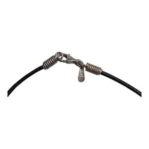 This necklace combines the elegance of a sterling silver clasp and a vibrant red stone pendant. The adjustable black cord ensures versatile wear.