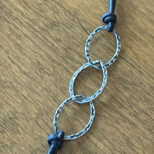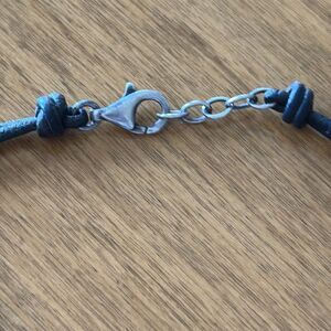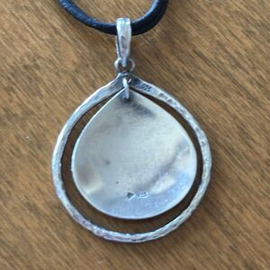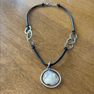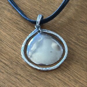 Silpada sterling silver necklace with sterling silver circle discs, black leather and a lobster clasp. Pendant is about 1 3/4" long. It is 18" long with a 2" extender and a lobster clasp. Can be found in the 2008-2009 catalog page 10. New for $82.00.