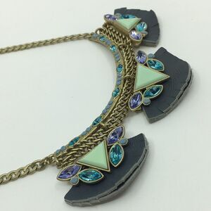 with brass chain, turquoise colored resin triangles,
