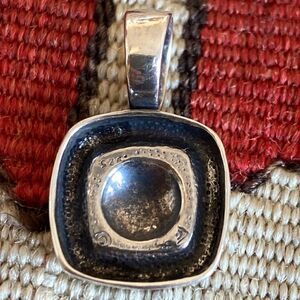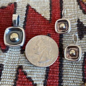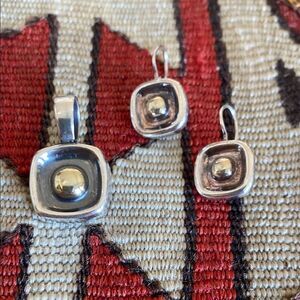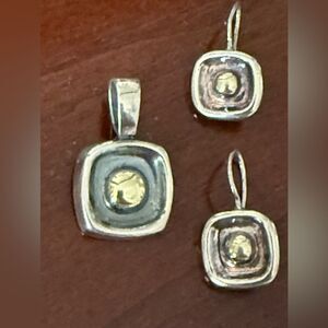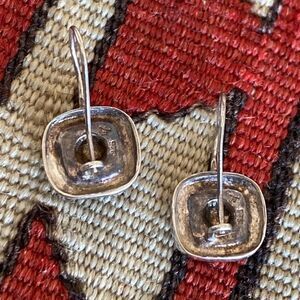 W0326 Retired Silpada square goldtone center in sterling silver background on French wires, approximately 1 in length. Can be found on page 13 in the 2006-2007 catalog.