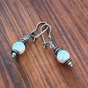 Silpada sterling silver pearl drop earrings, on locking French wires, 1.5 inches long. Can be found in the 2013 catalog.