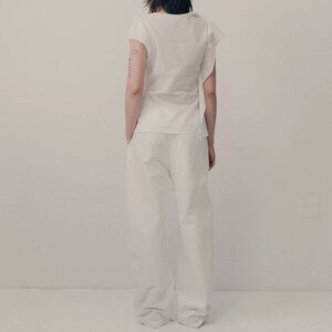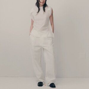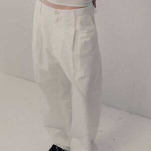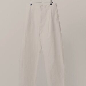 Brand New- Silphium Curve Trouser in white. THE CURVE TROUSER IS A TAILORED PANT WITH DEEP PLEATS, SIDE SEAM POCKETS, AND A BACK WELT POCKET. THE PANT CURVES OUT FROM THE HIP GIVING IT VOLUME AND DRAPE. Cotton/Hemp blend from Japan. (Retailer does not attach tags to their clothing, but comes with original packaging.