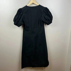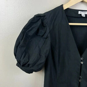 Silvae Christina Dress Size Small Black Puff Sleeve Midi Button Front Minimal