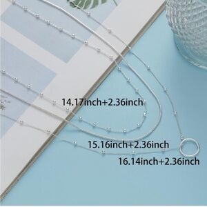 Silver 14k Silver Plated 3pc Circle Beaded Necklace Set