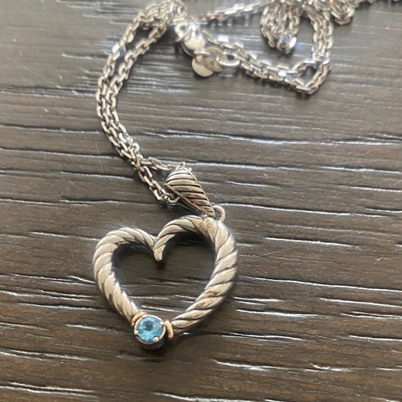 Elegant silver heart pendant necklace featuring a stunning blue gemstone. Perfect for adding a touch of sophistication to any outfit.