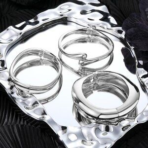 Silver 3 Sets Bangle Bracelets for Women and Teens Adjustable Chunky Twist Cuff