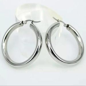 Silver 30mm Stainless Steel Tube Hoop Earrings