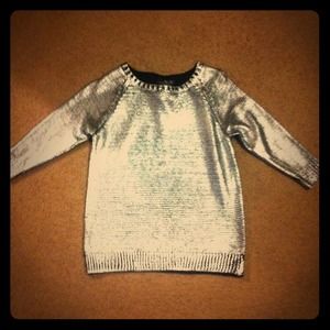 80s style sweater from 'love culture'. Fits tight in the arms. Size small can fit in this medium. Bright silver overlay all over soft black sweater on the inside.