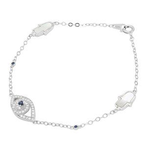 Silver 925 CZ Evil Eye and Mother of Pearl Hamsa Bracelet