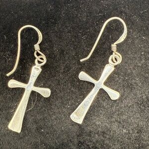 Elegant silver cross dangle earrings. Perfect for any occasion.