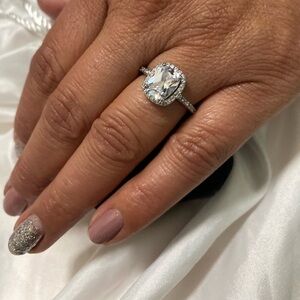 Silver 925 Crystal Cushion Cut Finger Fancy Ring Size 7