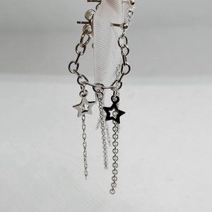 Silver 925 Rhodium Plated Multiple Wire Dangling Open Star Stud Earrings