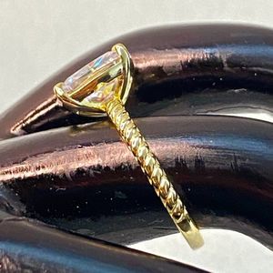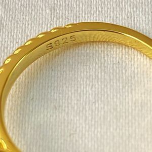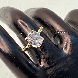 Silver 925 Ring Delux Gold Tone Square Clear Stone Scalloped Trim