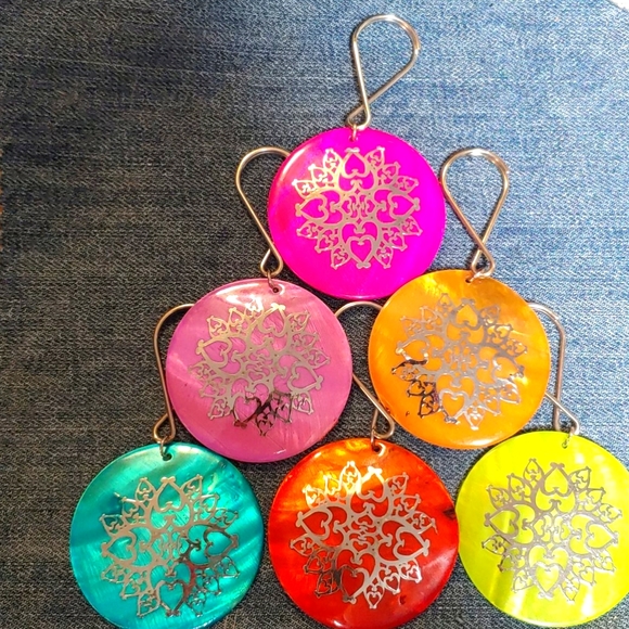 Silver filigree accents across beautifully pearlized shells. These keychains will be show stoppers! Measuring 1.5"-2" wide by 1.5"-2" tall. Available in a rainbow of gorgeous colors! Designer Originals!! Only a few in stock. Hurry and get yours before they are all gone!