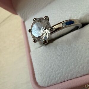 Sophisticated silver ring with a large solitaire stone adds elegance to outfits