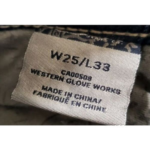 Silver Aiko Baby Boot Jeans Size 25X33 Heavy Stitch Destroyed Ripped Stretch. Some wear and tear on both hems of the pant legs. See photo.