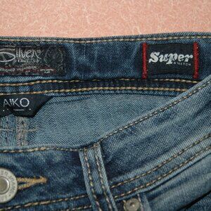 Silver Aiko Stretch Flare Bootcut Blue Jeans Women's Tag Size 26x30 Low Rise Denim Pants w/Bell Bottoms