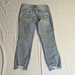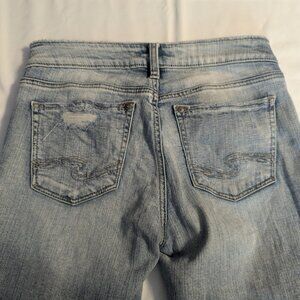 Silver Aiko Slim Crop Light Wash Size W26/L25 Distressed Jeans Color: Indigo