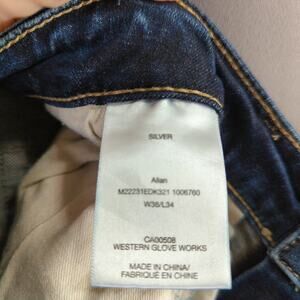 Elevate your style with these pre-owned Silver Allan jeans for men. Featuring a slim, straight fit and a comfortable stretch, these blue jeans are perfect for any occasion. The 36x34 size ensures a great fit. Don't miss out on this stylish and versatile addition to your wardrobe! Grab them now!