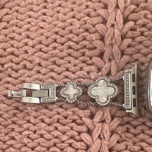 Silver Apple Watch Decorative Band w/ Clover Pattern