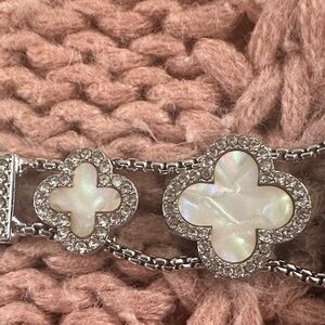 Elegant silver smartwatch featuring a decorative band. Perfect for style and functionality. Comes with an extender chain as well. Never used. Bought for a family member however, I bought the wrong size.