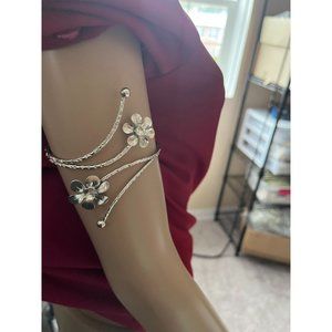 Silver Armlet, arm cuff bracelet, Silver armband, flower silver boho upper arm