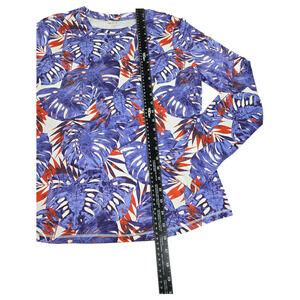 Silver Bait Wom LG Purple Red Leaf Print Fishing Swim Beach Long Sleeve Top EUC